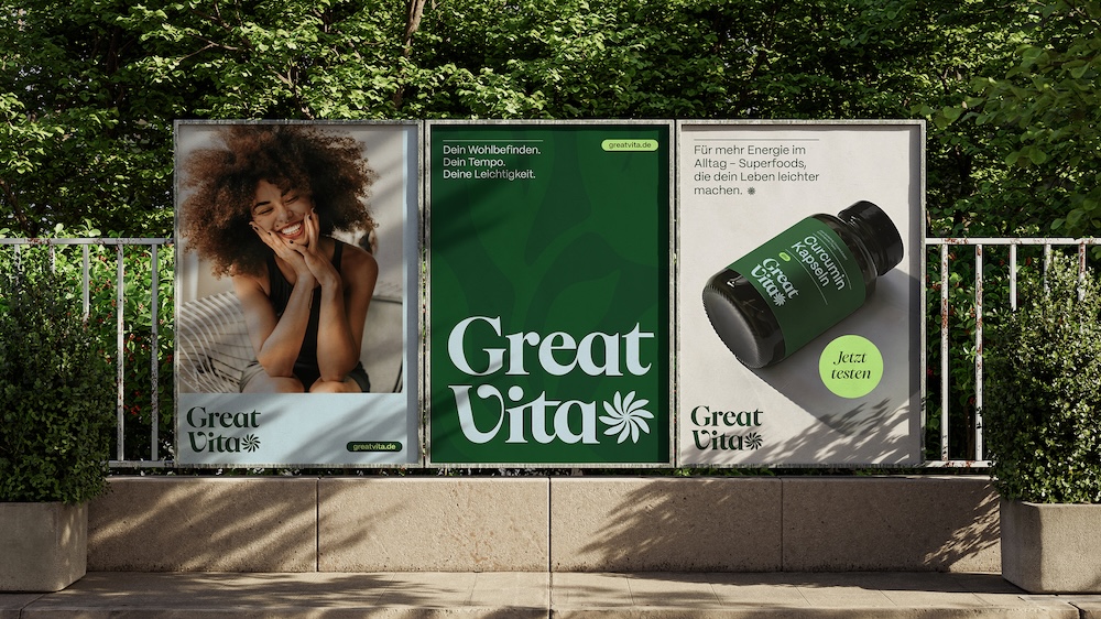 GreatVita bietet vielfältige Produkte, die das Wohlbefinden unterstützen – und das jetzt mit einem Rebranding der Frankfurter Agentur Arndt Benedikt, das auf Leichtigkeit und auf ein sattes, leuchtendes Grün setzt.